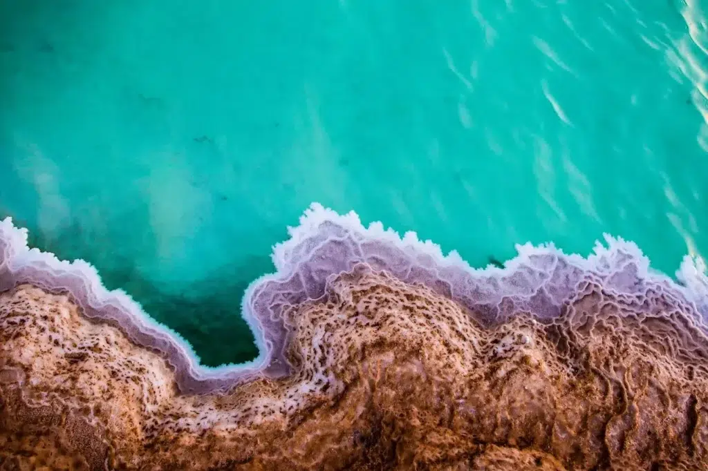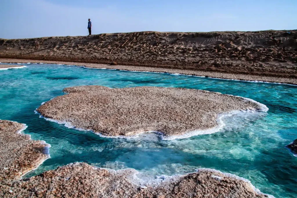 - Salt Formations: The mesmerizing salt structures floating on the surface are entirely natural. They form as water evaporates under the intense desert sun, leaving behind these unique shapes — some resembling lily pads, while others resemble alien sculptures.