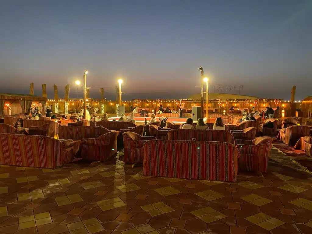 Most tour companies (around 95%) use shared desert camps, which are divided into 2 or 3 sections – such as Standard, Premium, and VIP. However, the only significant difference is the seating and the service: