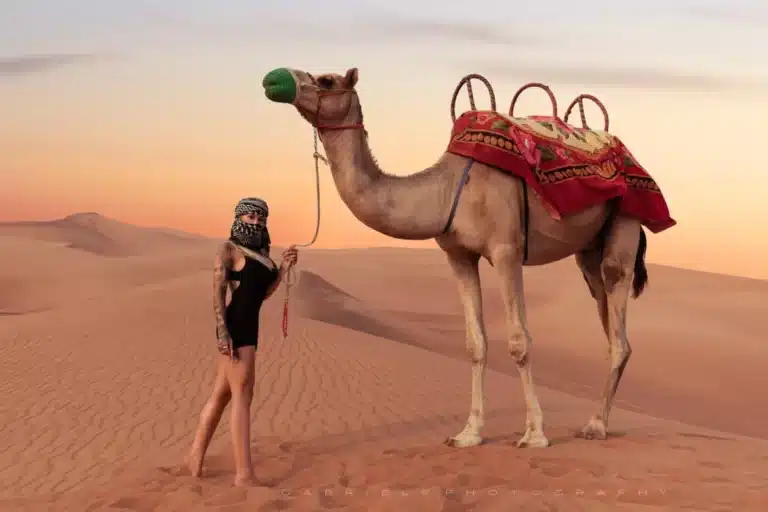 Are you ready to explore the heart of Dubai’s desert and create unforgettable memories? Our Camel Riding Safari is precisely what you need! Picture yourself perched atop a gentle camel, navigating through the breathtaking dunes and valleys that make the Dubai desert so special. The warm wind in your hair, golden sands stretching endlessly before you, and the rhythmic sway of your camel beneath you—this is what desert dreams are made of.